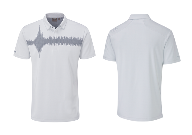 Inspired by the impact sound of the original PING 1-A putter, the Frequency polo shirt features a premium Jacquard pattern of this unique soundwave. A concealed placket ensures the pattern remains uninterrupted across the chest and a concealed button-down collar continues the clean look. Also featuring a large Eye mark logo on the reverse shoulder, the shirt is engineered from SensorCool yarns to ensure golfers remain cool and dry. Sensor Platform: SensorCool. Fabric: 100% Polyester. RRP: 75€.