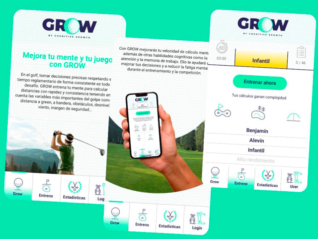 Tras estudiar y analizar durante varias temporadas el funcionamiento de la cabeza de los juniors de alto rendimiento en competición, se puso en evidencia la necesidad de entrenar las habilidades cognitivas que hacen falta para jugar al golf. Ahí es donde incide GROW, una web-app, creada en español y inglés, que se presenta como un Brain Trainer orientado a entrenar la mente para mejorar el cálculo mental, la concentración y la memoria de trabajo.