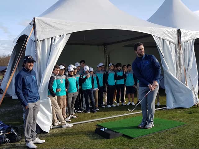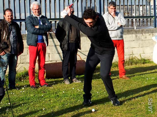 Su amigo Mikel Galdós aportaba además los comentarios técnicos precisos, como profesional y profesor de golf que es en el Club de Golf Larrabea, en Álava, lo que completaba magistralmente cada uno de los golpes de Jon. Para rematar el clínic, el invitado especial deleitó a los presentes con golpes de fantasía como algún que otro difícil globo con un hierro 4, emulando al legendario Seve Ballesteros.