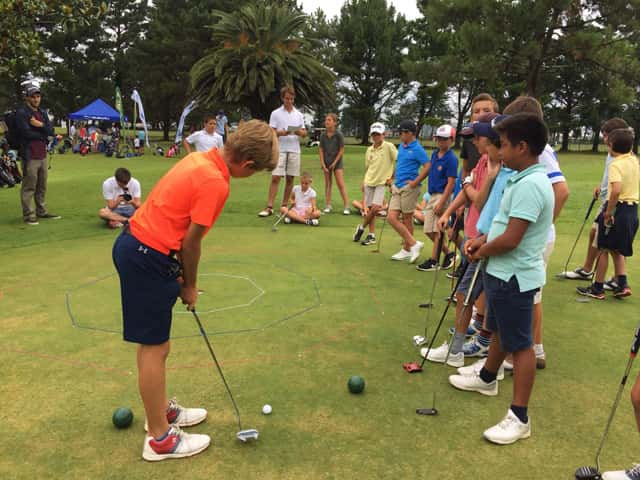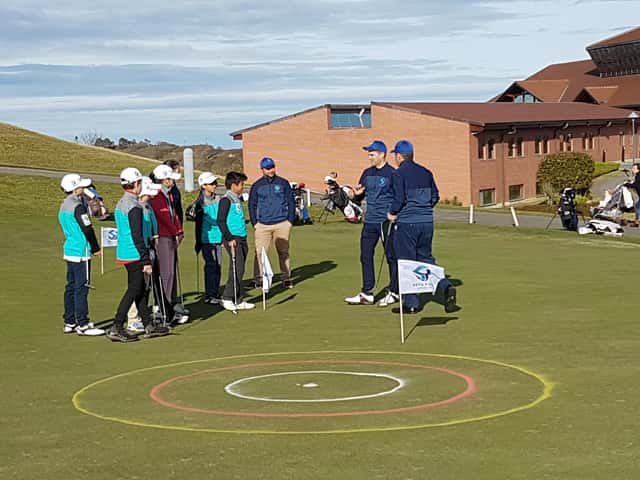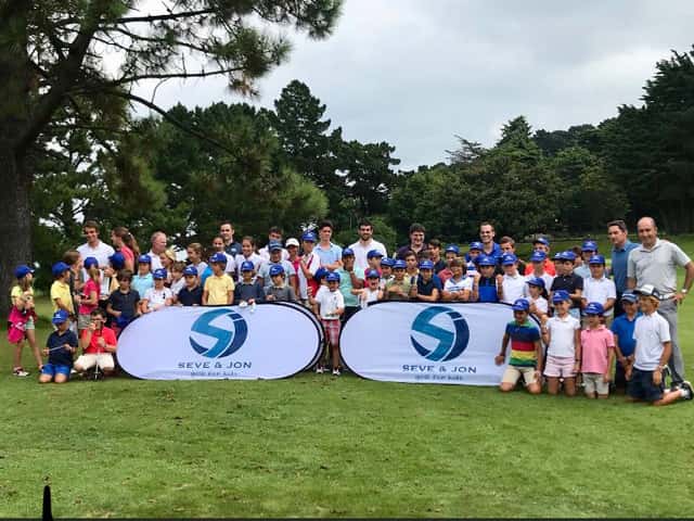Hacia las 14h de la tarde comenzaba en el putting green del club el clínic de Jon Rahm y Mikel Galdós para cerca de los 40 asistentes que se dieron cita en las instalaciones. Jon les deleitó con todo tipo de golpes de approach, aunque sus explicaciones desde el bunker fueran posiblemente las más interesantes e instructivas. La facilidad con la que Jon sacaba bolas de todo tipo desde la trampa de arena provocaba gestos de admiración y aplausos de entre los asistentes.