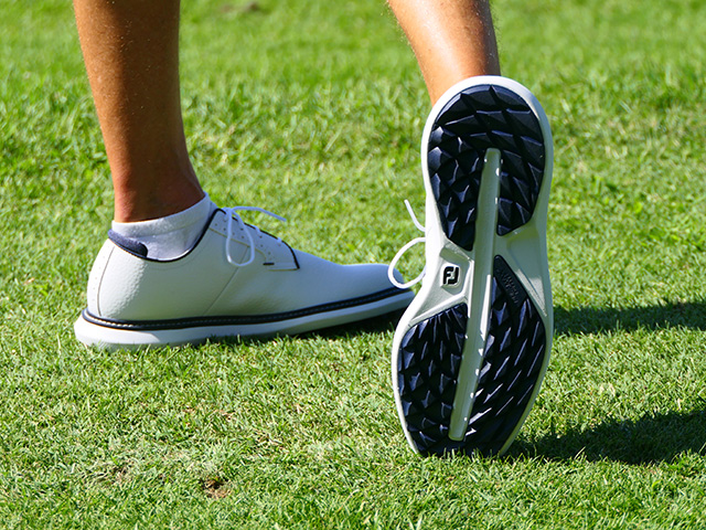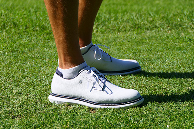 Los Traditions Blucher sin tacos de FootJoy “tienen una estética realmente bonita; nada más verlos, ya te apetece llevarlos”, asegura Carlos Vivas. “Luego te los pones y no necesitas domarlos, porque resultan confortables desde el primer paso”.